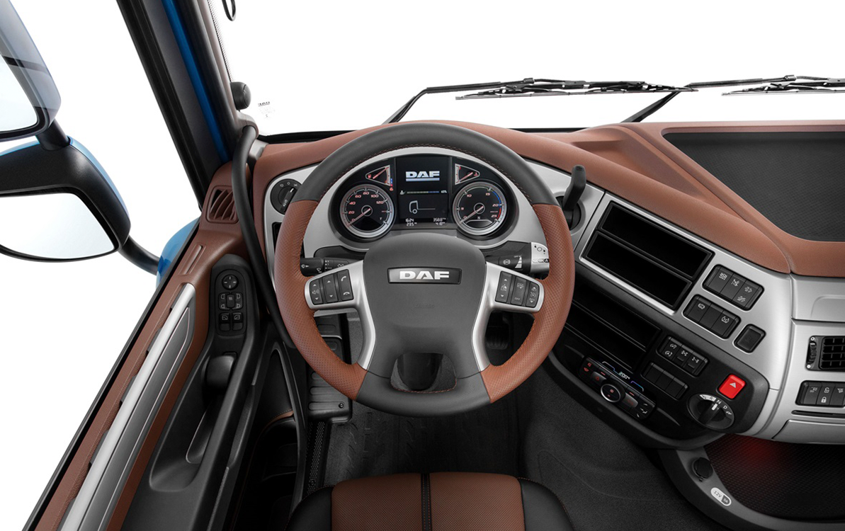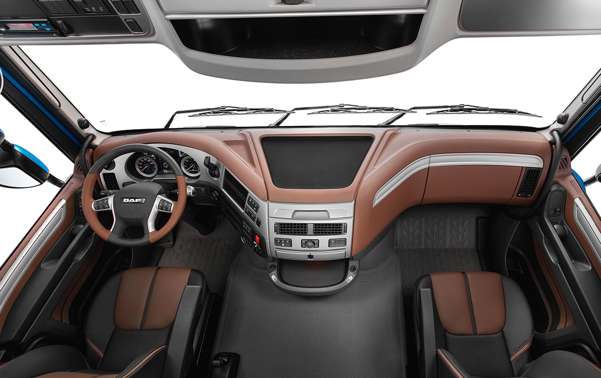 As novas cores quentes e agradáveis em tons de areia do painel, bancos, cortinas, colchões e paredes laterais e traseiras conferem um aspecto atrativo ao interior da cabine na Linha Standard para que cada motorista possa se sentir confortável e em casa. A nova Linha Exclusive é o expoente máximo do luxo e do conforto. Distingue-se pelo seu painel de cor conhaque e pelas elegantes ventilações em alumínio Um ambiente de trabalho e de habitação 6 estrelas.